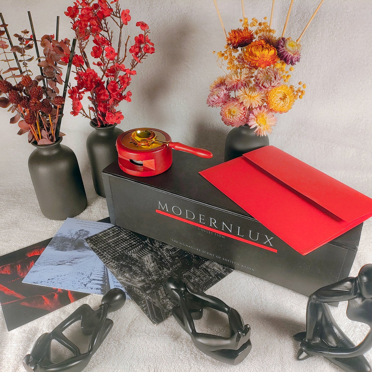 "Here, at ModernLux, we set ourselves apart by adding value to every diffuser purchase. Right now, we offer three beautifully crafted arrangements, each paired with its own unique essential oil fragrance. Every set includes a personally captured photograph taken by me, adding a unique and personal touch that makes every diffuser truly one-of-a-kind. This is just the beginning. We are excited to expand our collection even further in the near future, bringing you more unique scents and elegant, modern designs that will transform your space into a contemporary haven of beauty and relaxation."